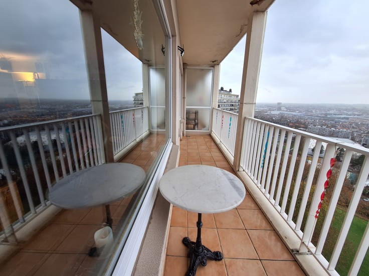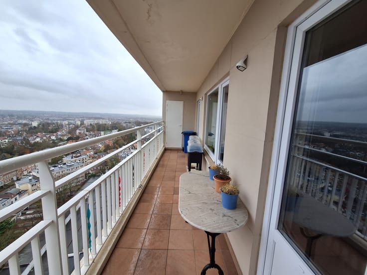 Il se situe au 15ème étage dans un domaine verdoyant de plus au moins 2 hectares avec une conciergerie et un parking commun.