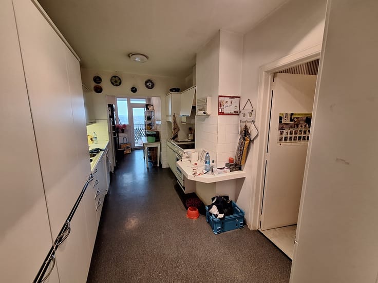Vous trouverez une cuisine semi-équipée de 18m² avec un espace buanderie qui donne accès au balcon.